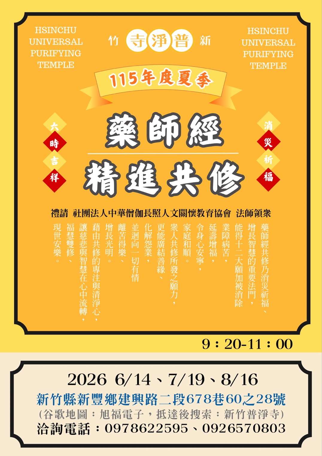 ◎僧伽長照— 115年度夏季(6月-8月) 新竹新豐社區據點 「藥師經共修」