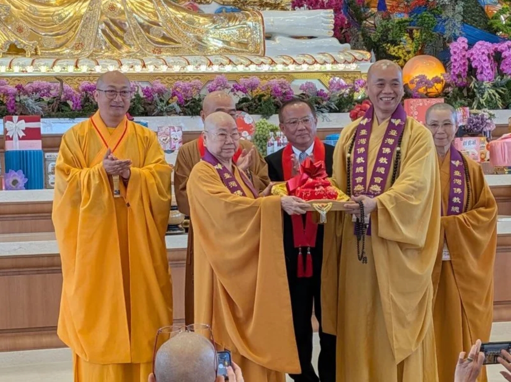 台灣佛教總會第25、26屆理事長交接暨第26屆理監事就職典禮,今天在屏東全球佛教聯合會館舉行,在來自全球19個國家、逾3000名僧侶與信眾見證下,新任理事長會常大法師從前任理事長宏安長老尼手中接下印信完成交接,場面莊嚴隆重。